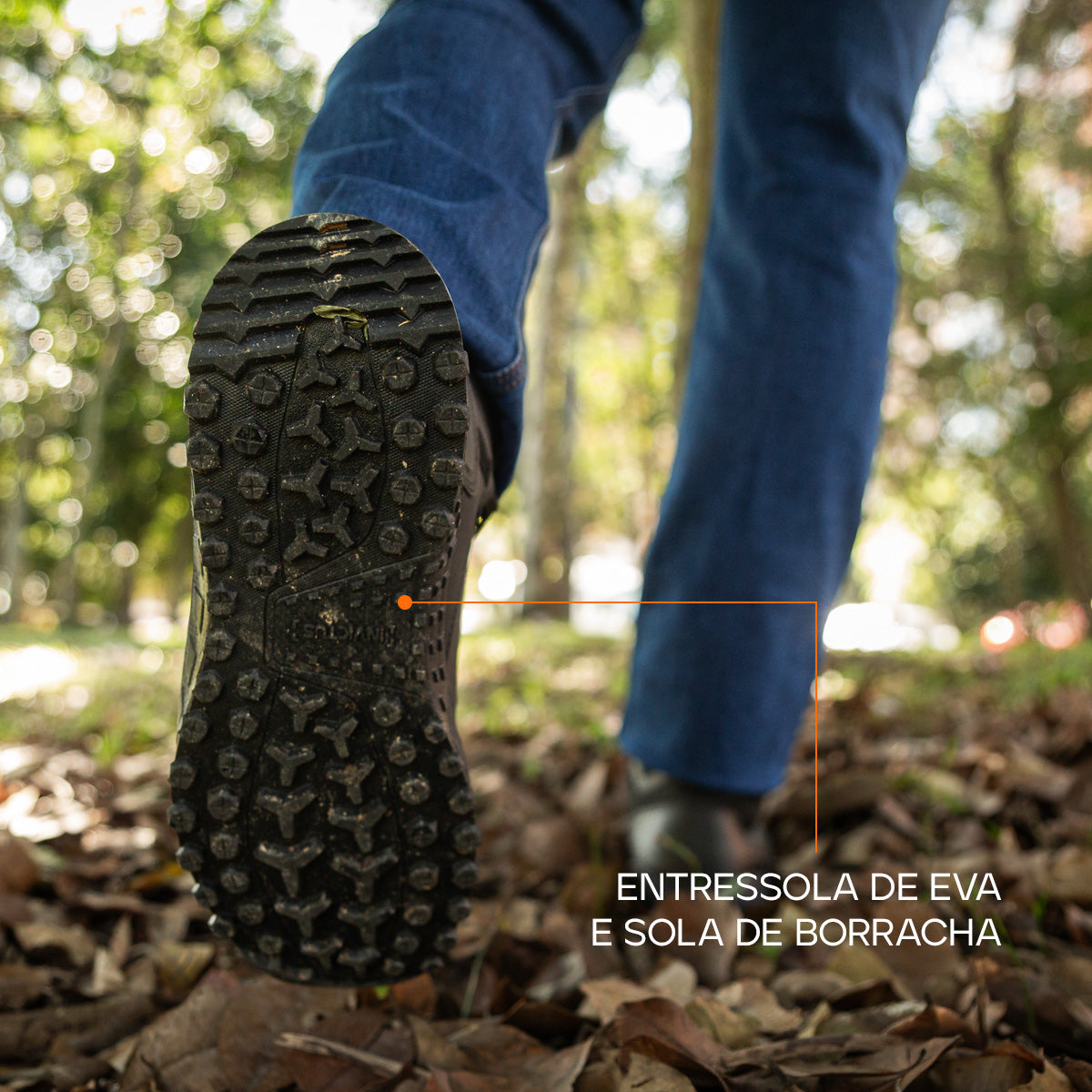 O novo solado com tecnologia COMFORTMAX também evoluiu. Agora, une borracha de alta resistência à abrasão com entressola em EVA, garantindo mais leveza, amortecimento e tração em qualquer terreno.